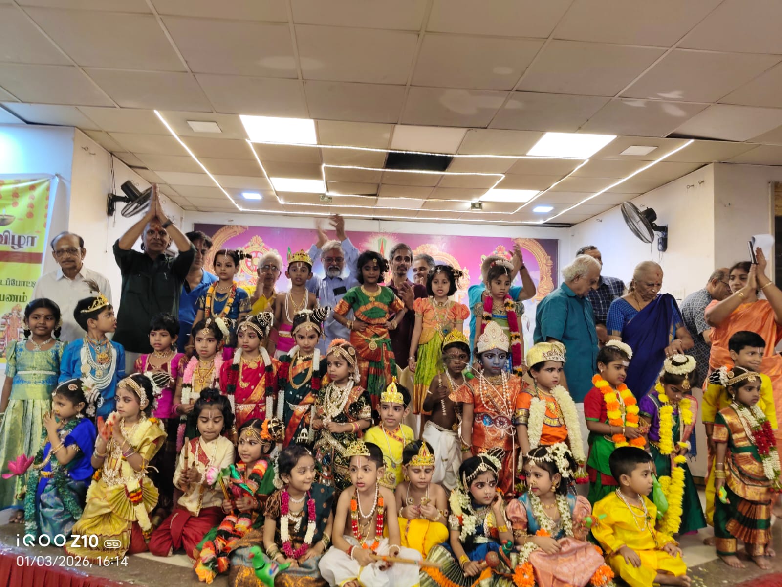 Seva Sri organisation conducted the Tiruppavai Thiruvizha in a grand manner Saturday, January 3, 2026, at Sri Sai Ram Hall, Thillaiganga Nagar, Nanganallur. The stage was filled with tiny ‘Andals’ and ‘Kannans’ from LKG and UKG classes. Children from classes 1 and 2 beautifully recited the Tiruppavai Pasurams, creating a divine atmosphere.