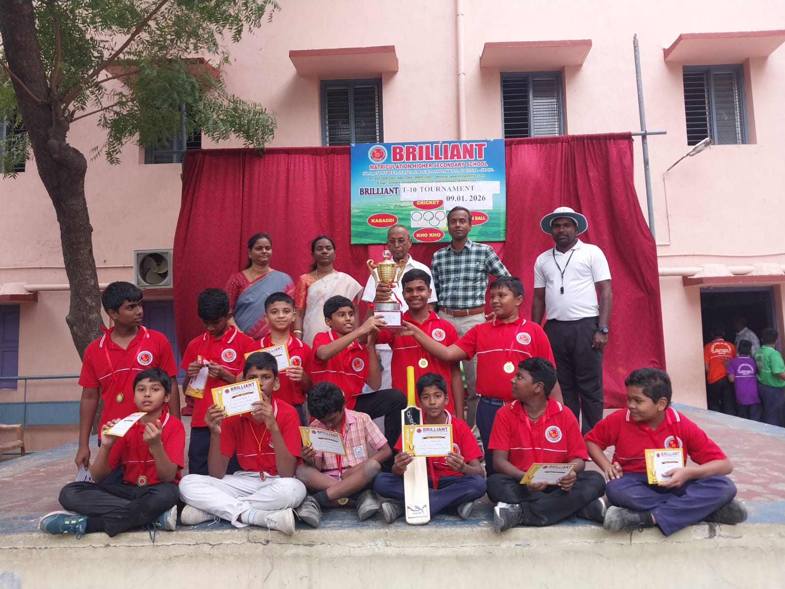 A T10 cricket tournament was successfully conducted at Brilliant Matriculation Higher Secondary School, Madipakkam, Friday, January 9, at the school playground.