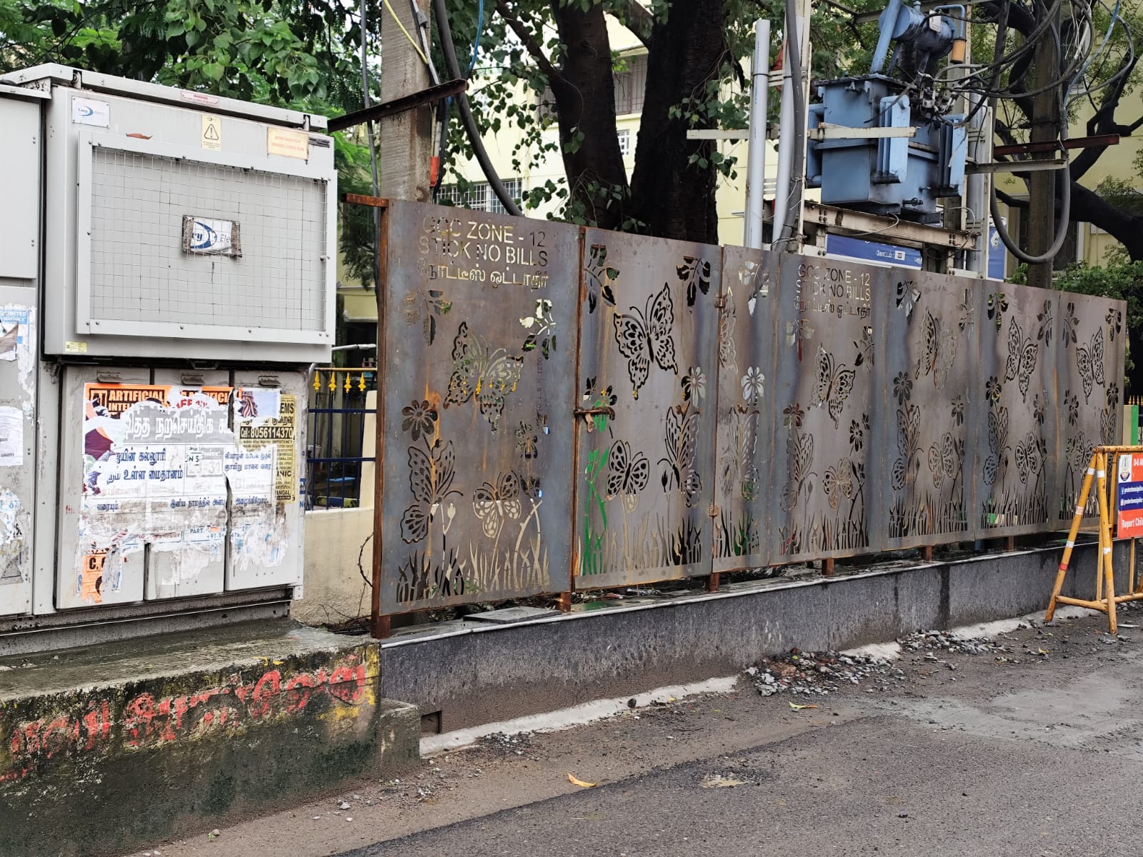 As mentioned earlier by Nanganallu Speaks, many areas in Nanganallur and its surrounding localities have now been fitted with view cutters on electric transformers. These newly-installed view cutters are giving a neat and attractive look to the transformers while also improving public safety.