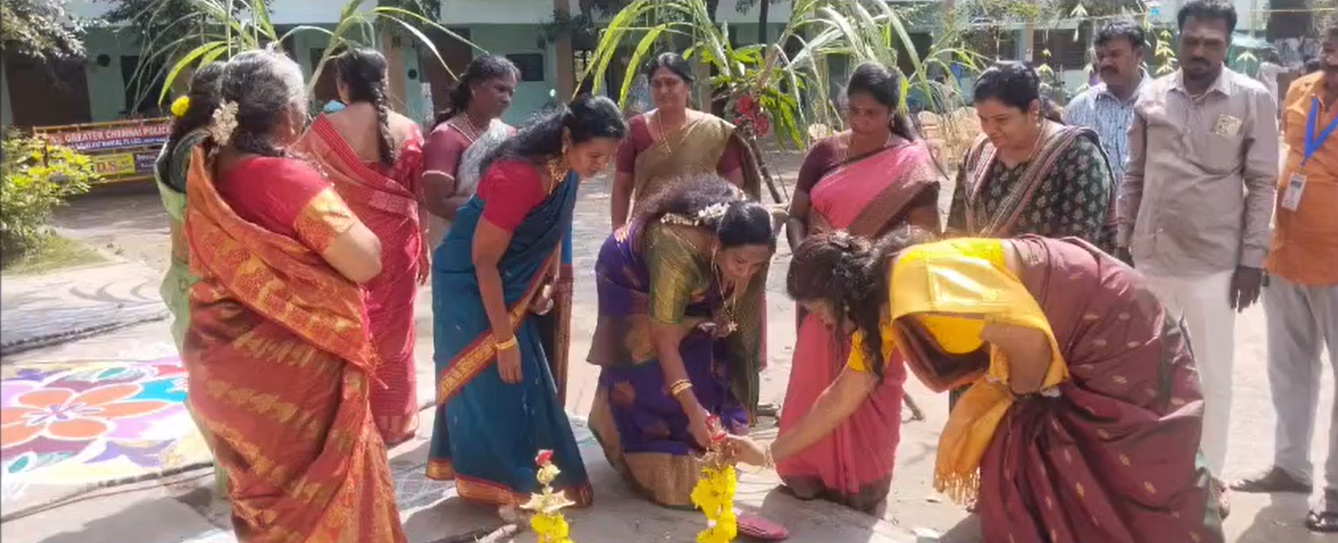 Teachers and students of Nehru Government Boys Higher Secondary School, Nanganallur, celebrated the traditional Pongal festival in a grand and meaningful manner.