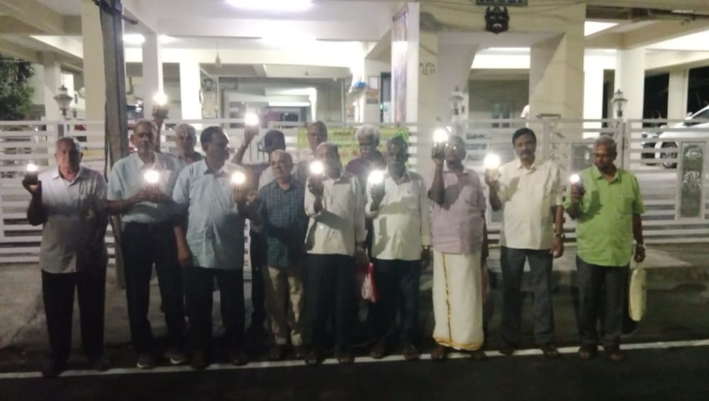 Senior citizens gathered with torchlights and expressed their