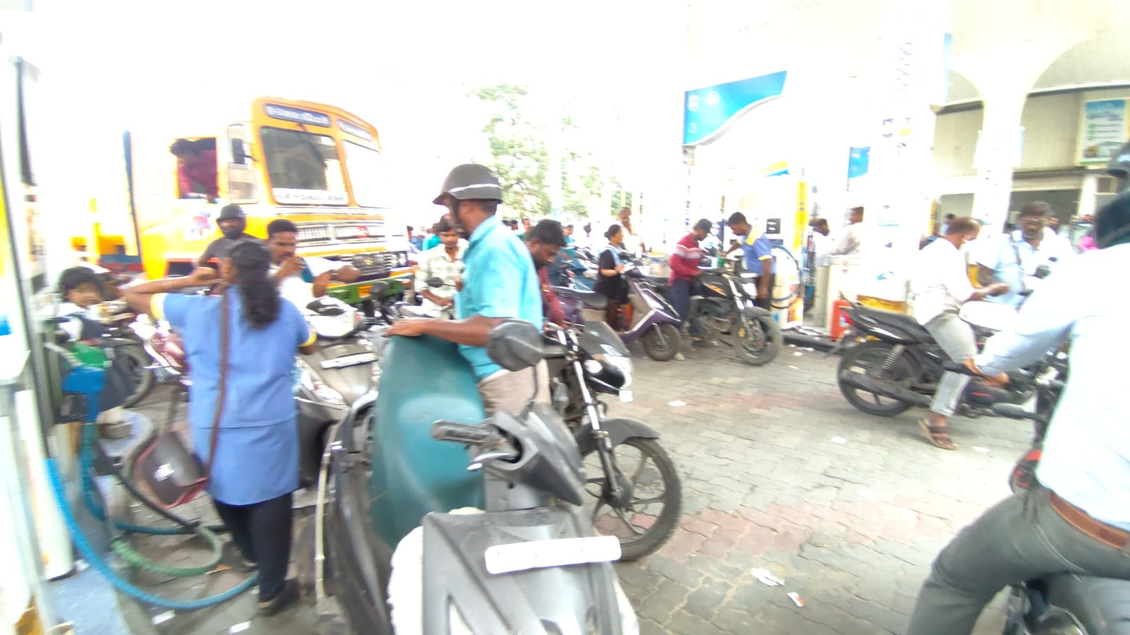 witnessing heavy crowds. Many people are rushing to fill petrol