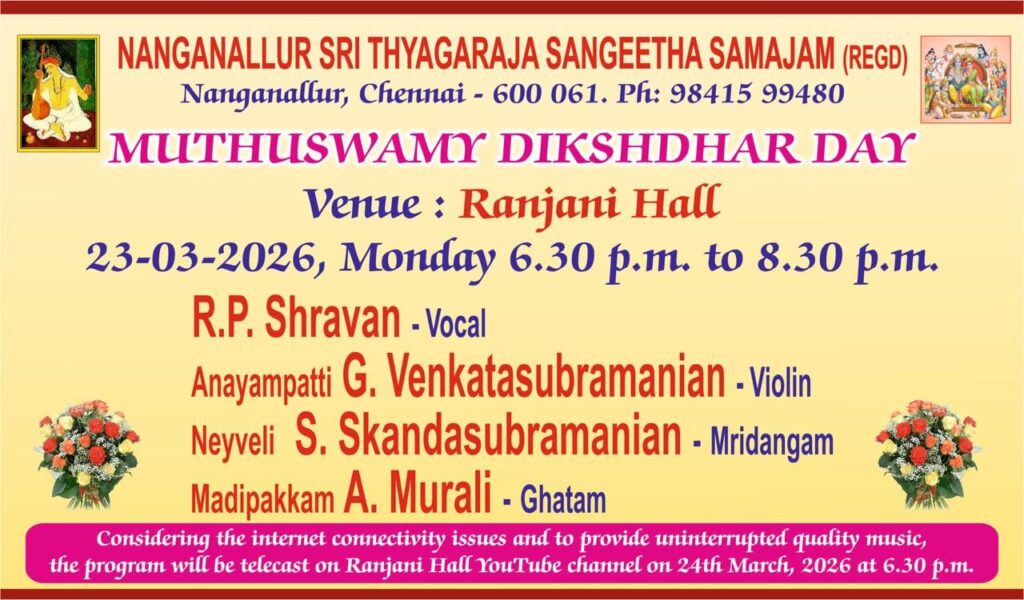 The programme will feature a concert by Sri R.P. Shravan,