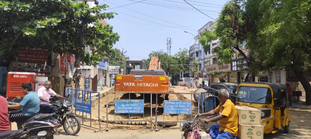 stretch from Rela Clinic up to Bharath Hospital is under full-
