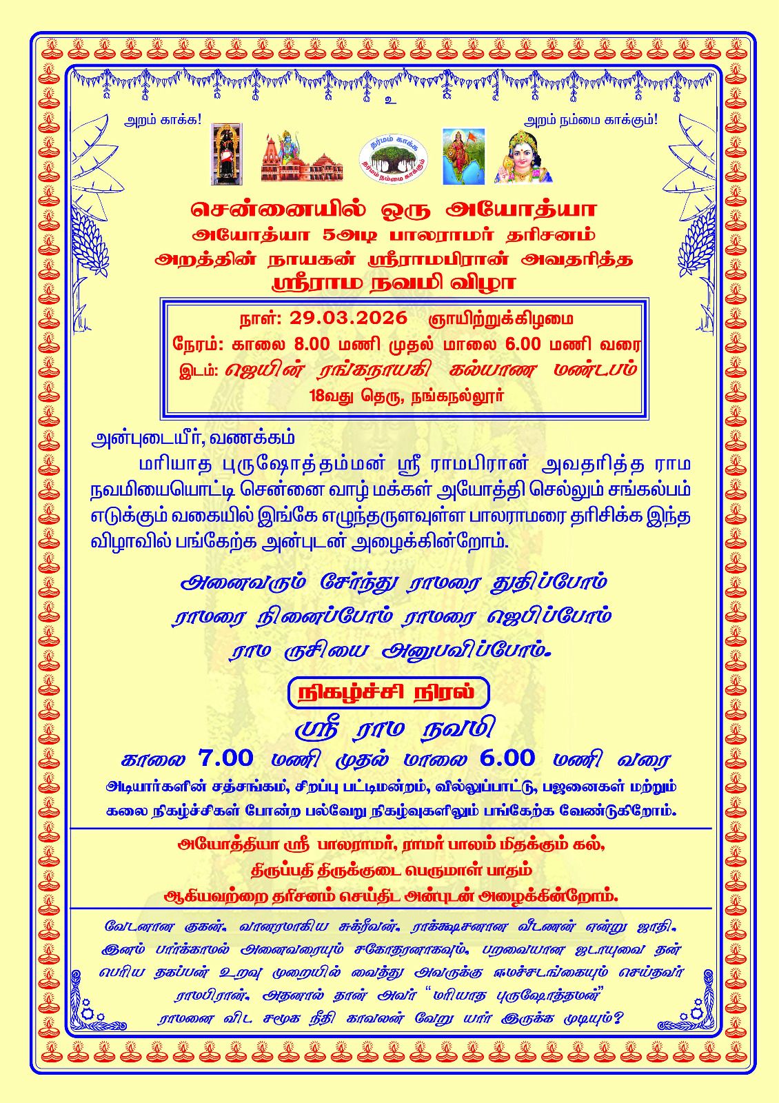 A key highlight of the event is a 5 ft Sri Bala Ramar darshan,