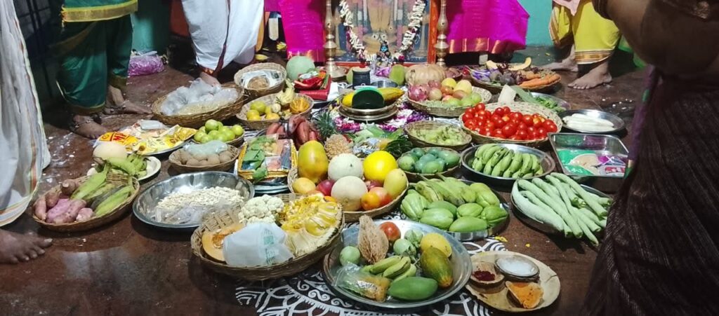புத்தாண்டு தினமான அன்று அதிகாலை முதலே அம்பாள் மண்டபத்தில் அழகிய கோலங்களுடன் விஷு கனி அலங்காரம் செய்யப்பட்டு, விளக்கு, பழங்கள், பூக்கள், புதிய வஸ்திரம், வெற்றிலை, பாக்கு, கண்ணாடி, புத்தகங்கள் மற்றும் நாணயங்கள் போன்ற மங்கள பொருட்கள் வைக்கப்பட்டிருந்தது.