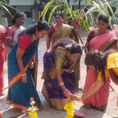 | S VENKATESHWARAN | Teachers and students of Nehru Government Boys Higher Secondary School, Nanganallur, celebrated the traditional Pongal festival