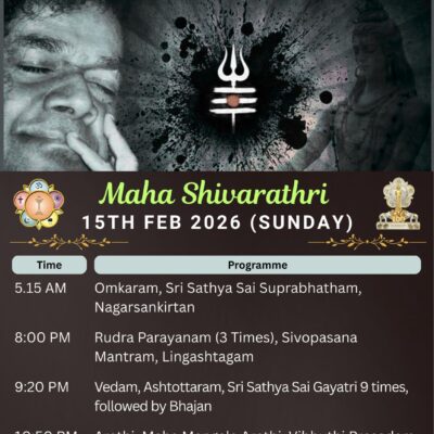 | S VENKATESHWARAN | Maha Sivarathri will be observed today Sunday, February 15, 2026, atSri Sathya Sai Seva Organisations, Nanganallur